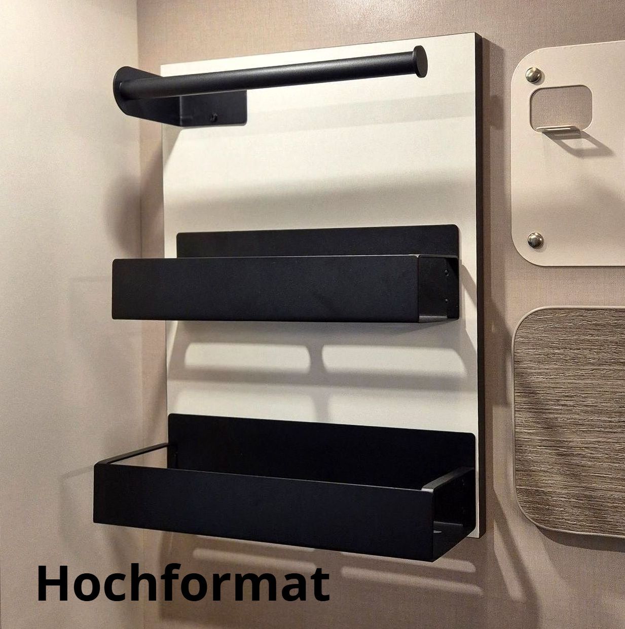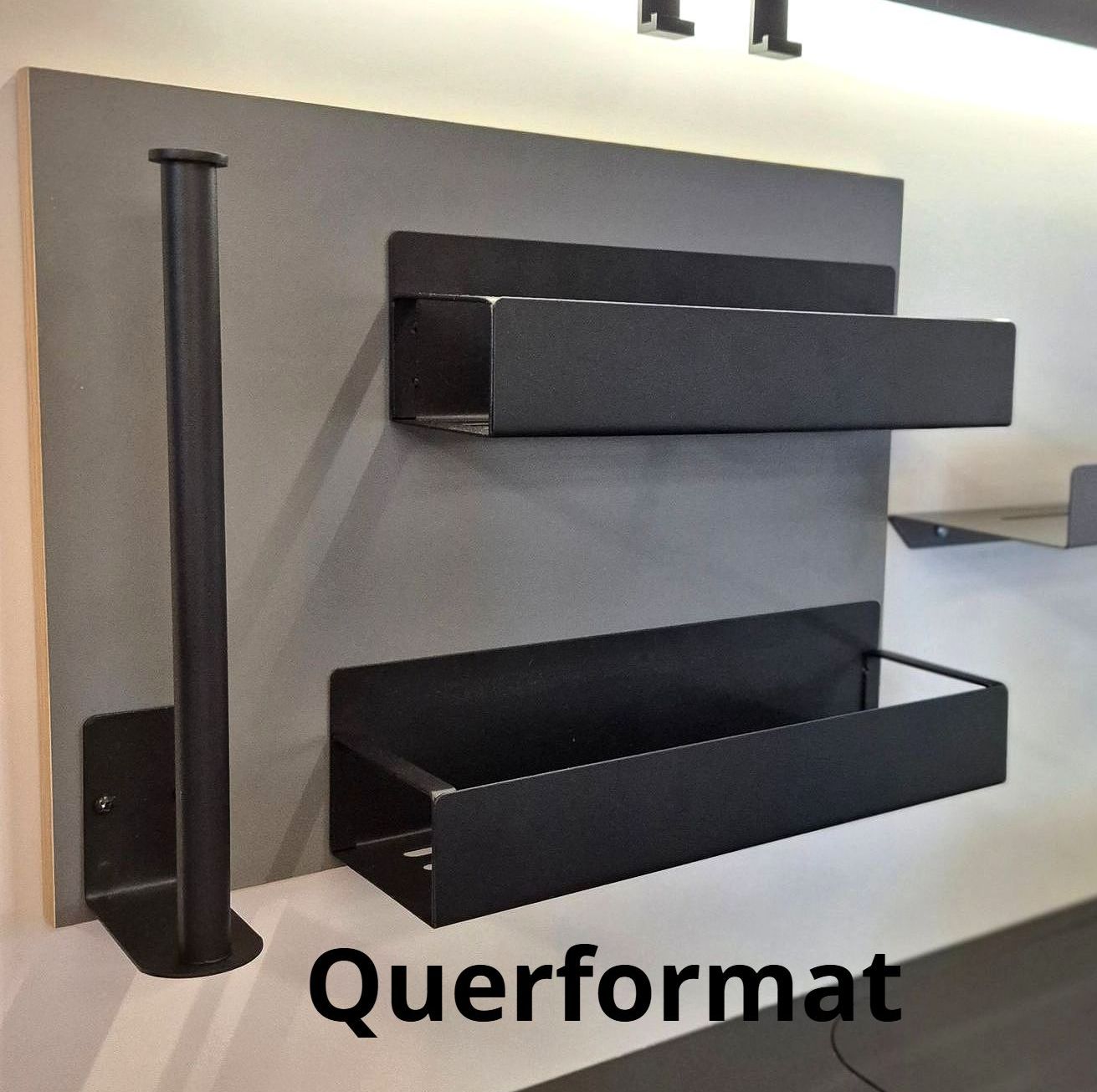 Hochwertig verarbeiteter, pulverbeschichteter Stahl in der Farbe mattschwarz. Modernes Design mit abgerundeten Ecken.