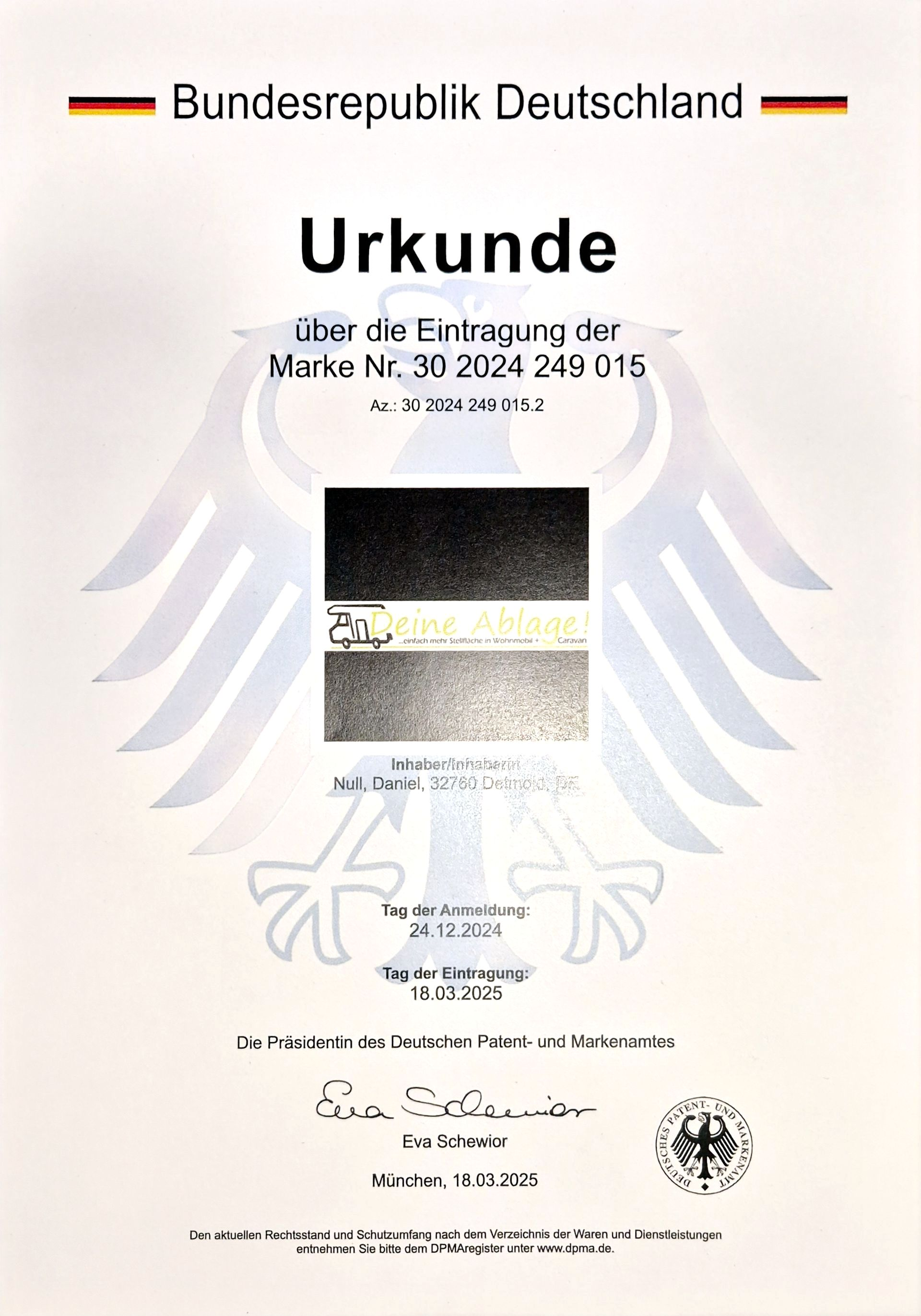 Urkunde - "Deine Ablage" Eingetragene Wort- und Bildmarke