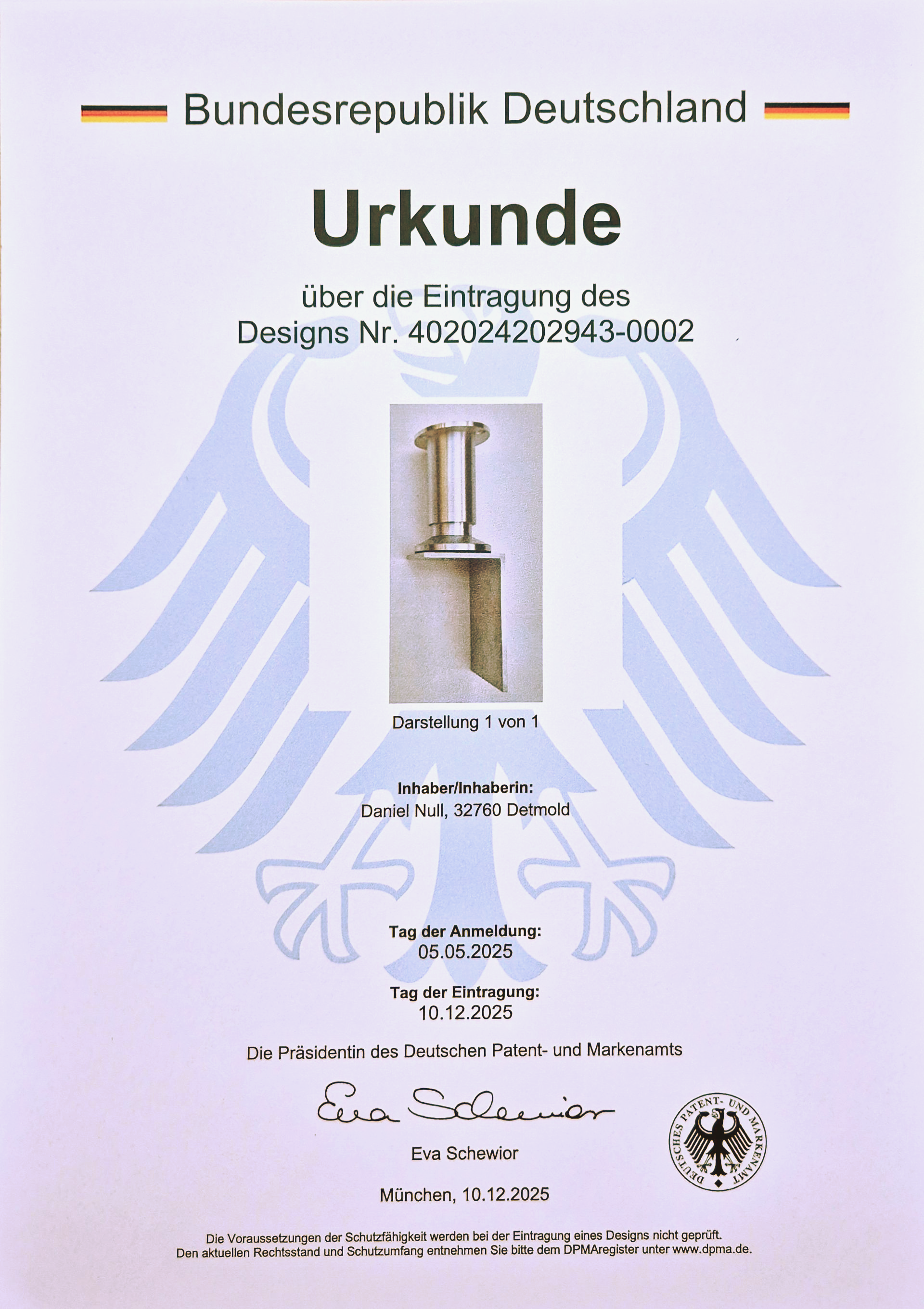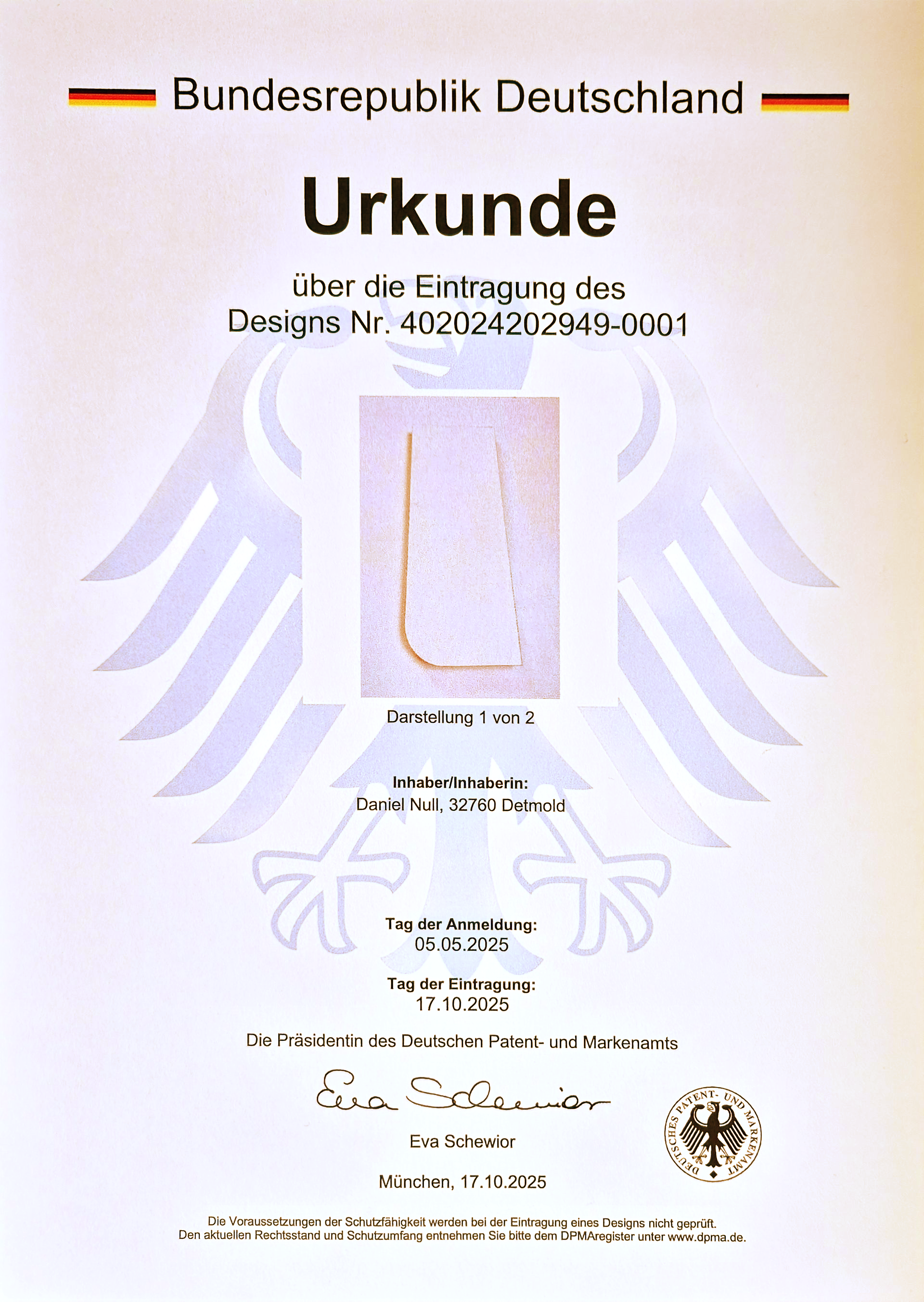 Hier sehen Sie unsere Urkunden und Nachweise vom Deutschen Patent- und Markenamt.